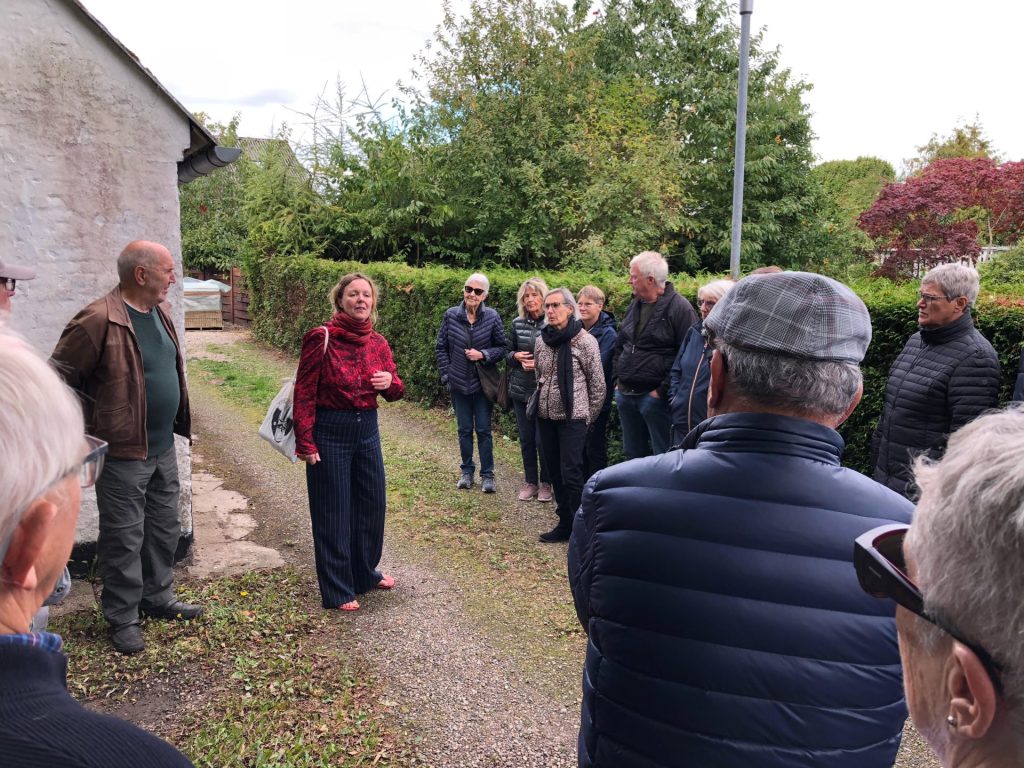 Formidling af arkivets materialer kan se ud på mange måder. I Uldum har vi en meget aktiv facebook-side, en hjemmeside, en årlig husstandsomdelt folder, faste åbningstider, udstillinger, skilte og lejlighedsvise foredrag og aktiviteter – vi har f.eks. haft byvandringer med Pernille Helberg Stentoft af flere omgange. Der er mange ideer til hvordan man kan formidle vores historie. Vi vil utroligt gerne arbejde mere i lyd og video, så vi kan nå et større publikum. Især er lyd meget efterspurgt af flere svagtsseende arkiv-brugere. En lydvandring i byen, på kirkegården eller i kæret kunne være gode fremtidige projekter. Mere moderne tiltag som apps og spil kunne også være interessante at kigge ind i for at nå og engagere et yngre publikum. Det kunne endda være teater. Flere skilte som det vi har opsat i Stationsparken kunne også være en mulighed. Alt den slags selvfølgelig i samarbejde med andre – i og udenfor foreningen. Det er ikke forventet at vores frivillige skal kunne det hele – man arbejder på det man synes er sjovt og som man har kræfter til. Vi samarbejder også med andre lokalarkiver og har jævnligt en “kaffeklub”, hvor vi deler erfaringer. Det er både hyggeligt og oplysende. Man kan også komme på kursus i alt hvad lokalarkiverne laver.